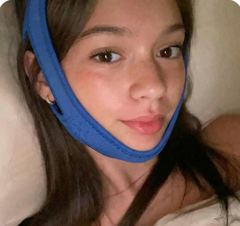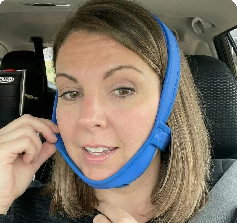 The strap aligns your jaw in a forward-aligned position, which encourages nasal breathing during sleep.